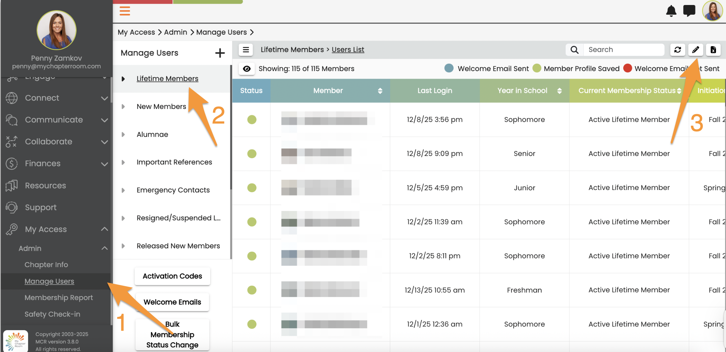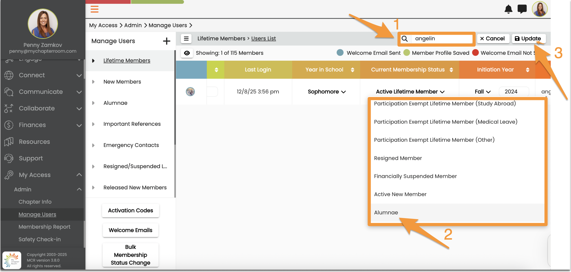 A Membership status change report will be emailed to the collegiate admins, the leader in charge of finances and the chapter advisor.