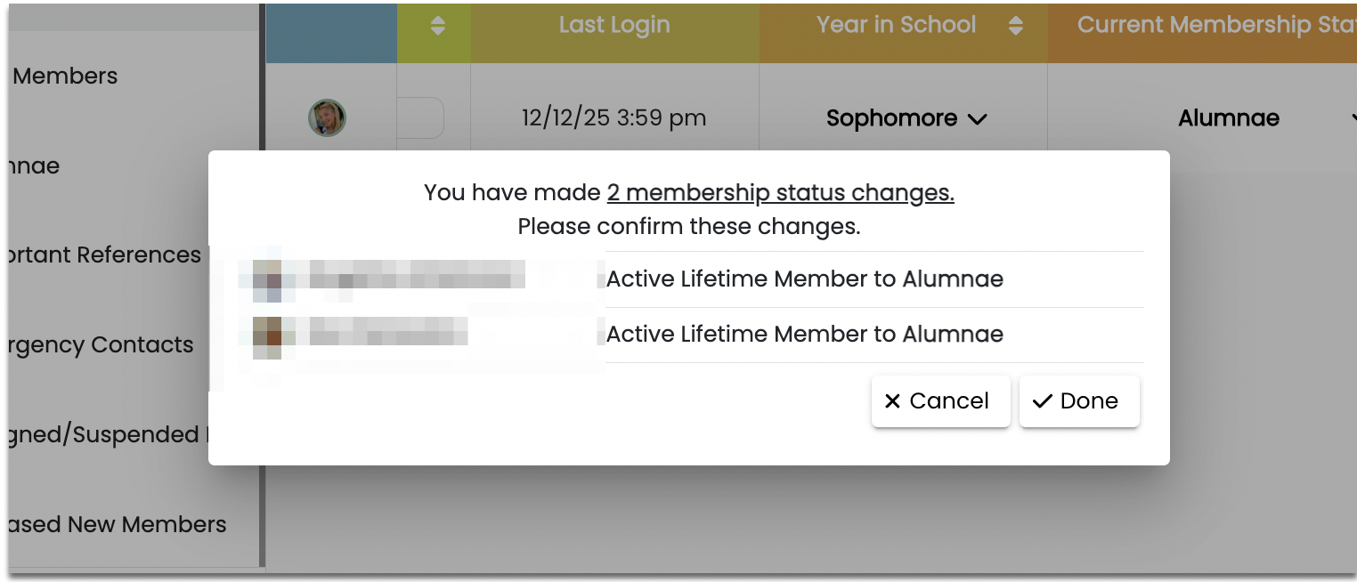 - You can do multiple membership status changes at the same time
